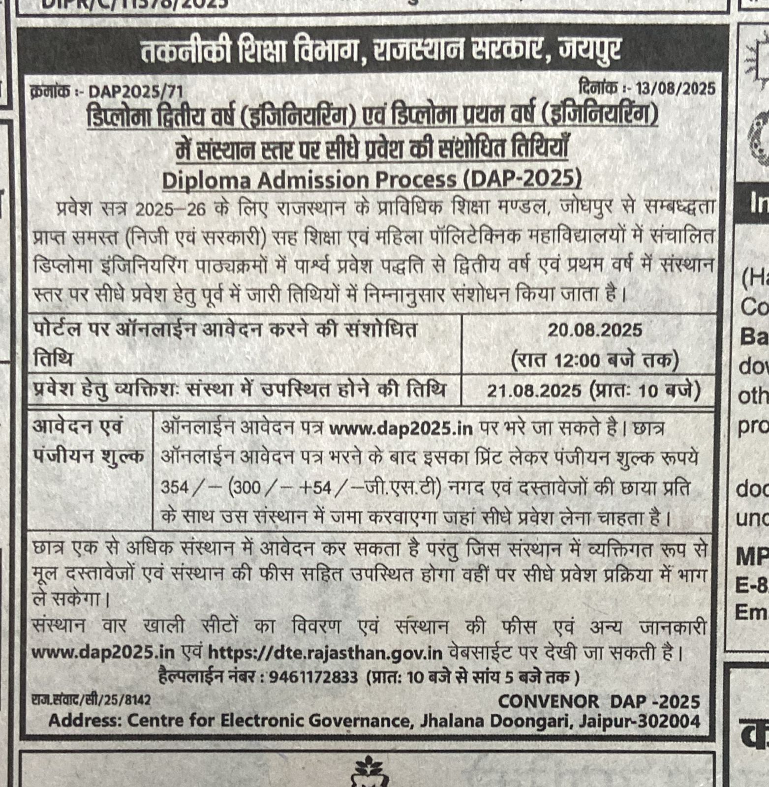 DIPLOMA SECOND YEAR(LATERAL ENTRY) ADMISSIONS